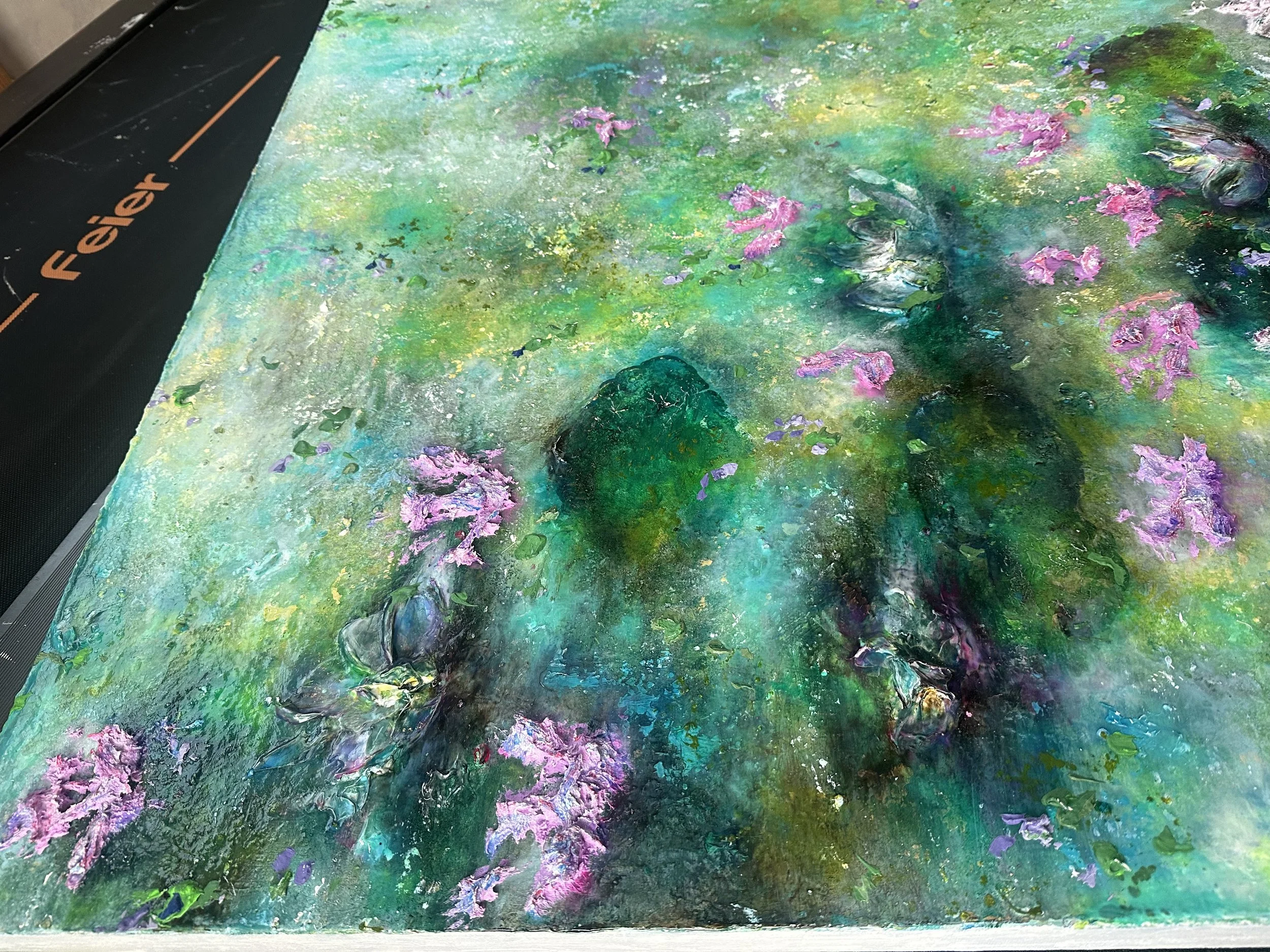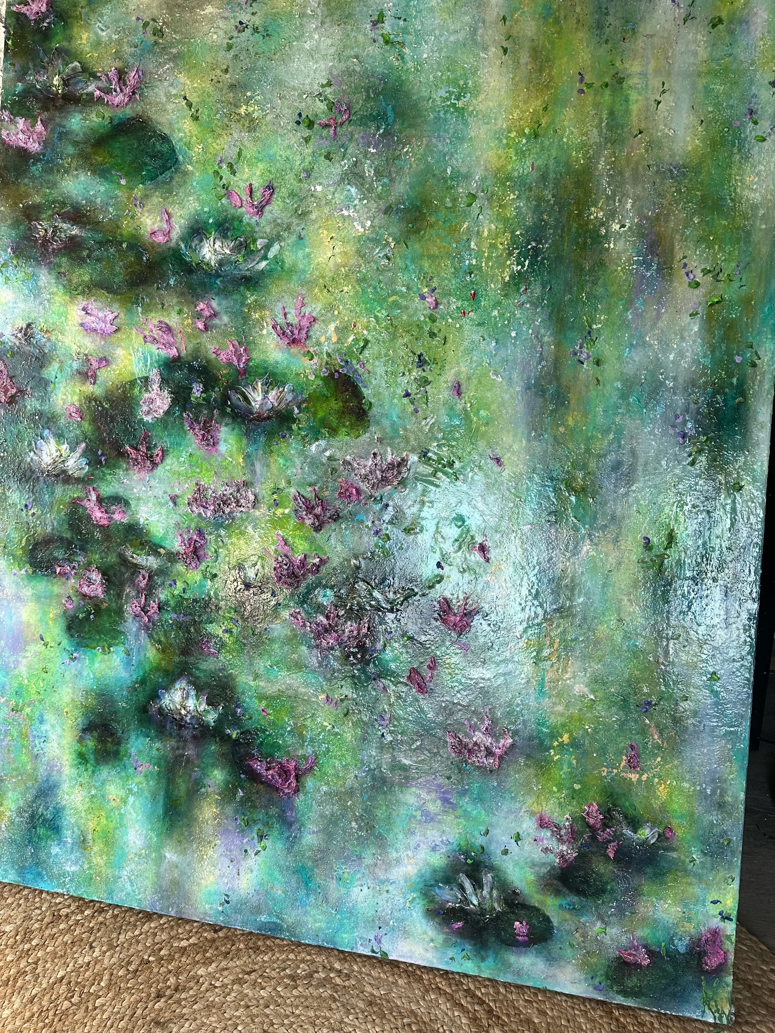 After our household being down sick for almost 3 weeks, I finally finished “Where She Once Was” 60x48. It, along with another 48x48 of mine, will be going in @sasseartmuseum st the end of the month thru the beginning of March. #art #painting #lilypond #floralart #modernart #kelliethomaswalker #artist #artwork #writer #asbtractart #largescaleart #origionalart #contemparyart #artgallery #sassemuseumofart #natureart #artcollector