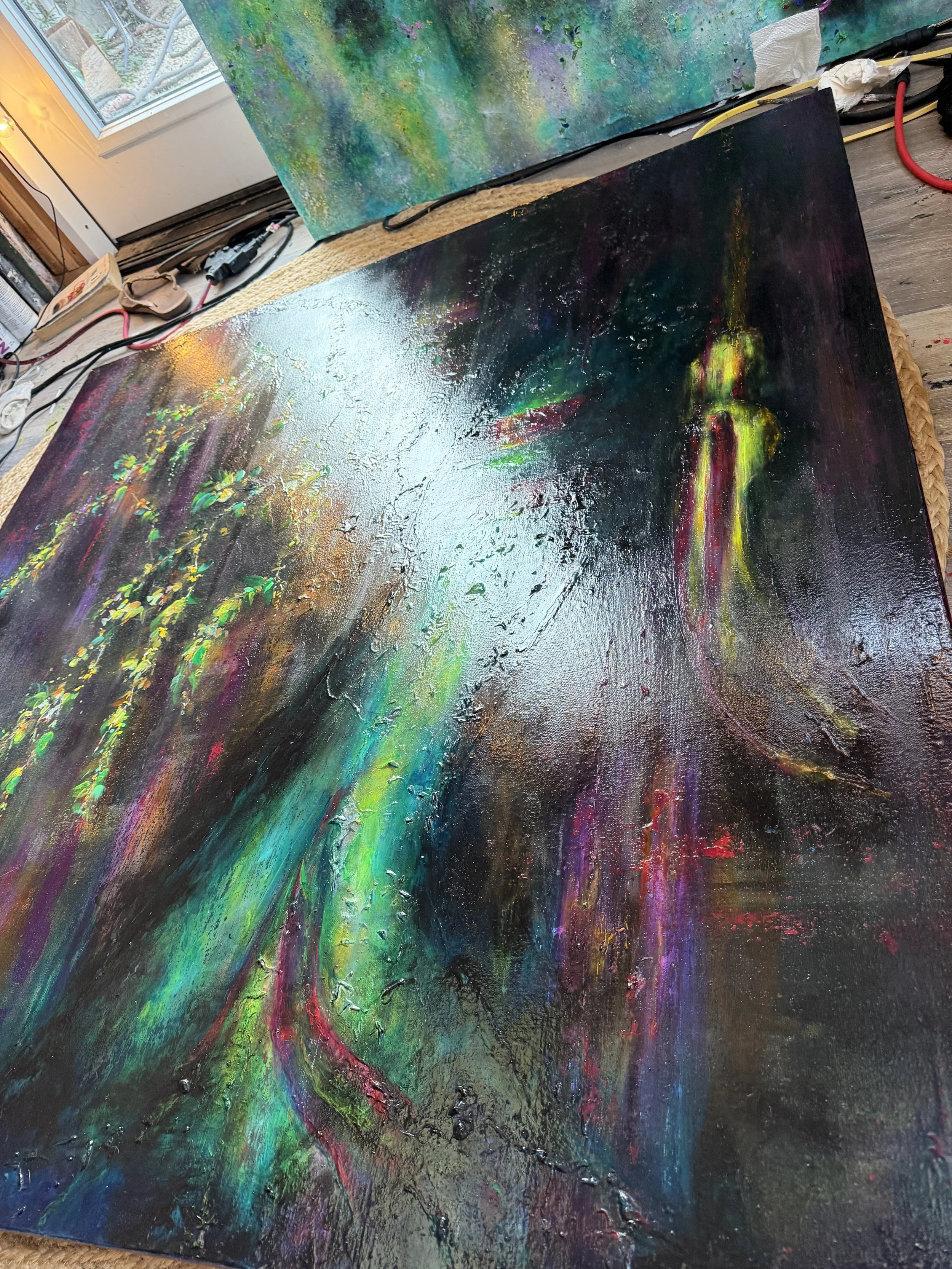 48x48 Bubble Universes. Almost done! This has two finished paintings underneath, so I did a resin pour to restart, which is why it’s so glossy. I can mute it by two types of varnish. This painting has taken me years to complete, which will have a high price point. #universe #galaxy #space #stars #bubbleuniverse #outerspace #astronomy #astronomyart #astronomyarray #astronomers #telescope #science #art #kelliethomaswalker #artist #artwork #painting #writer #fineart #artcollector #gallery #artworks #longbeachca #losangeles #contemporaryart #artdealer