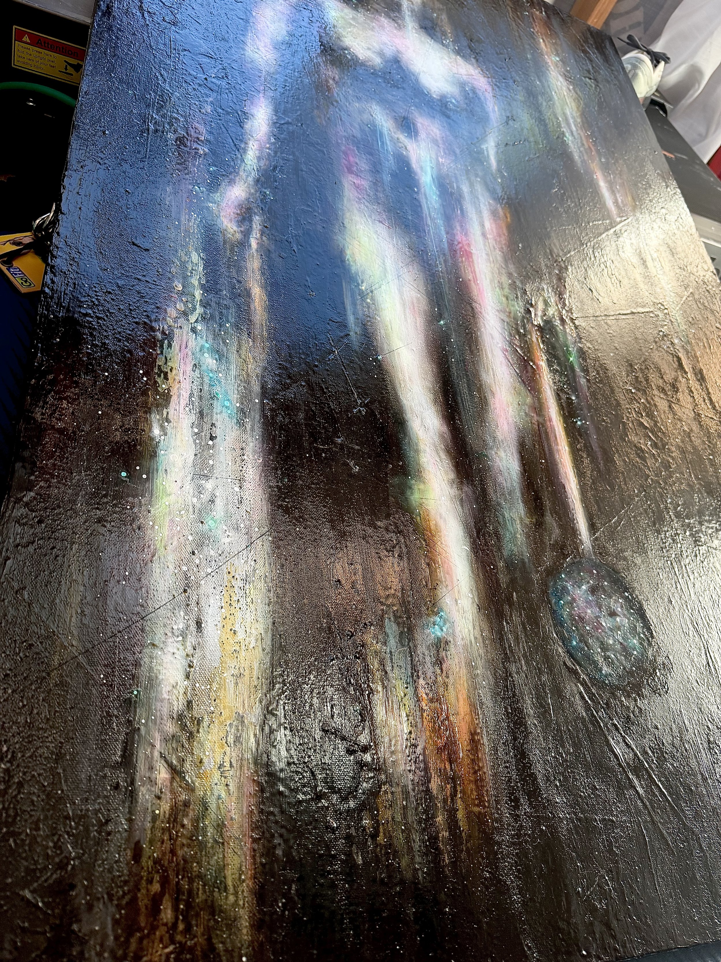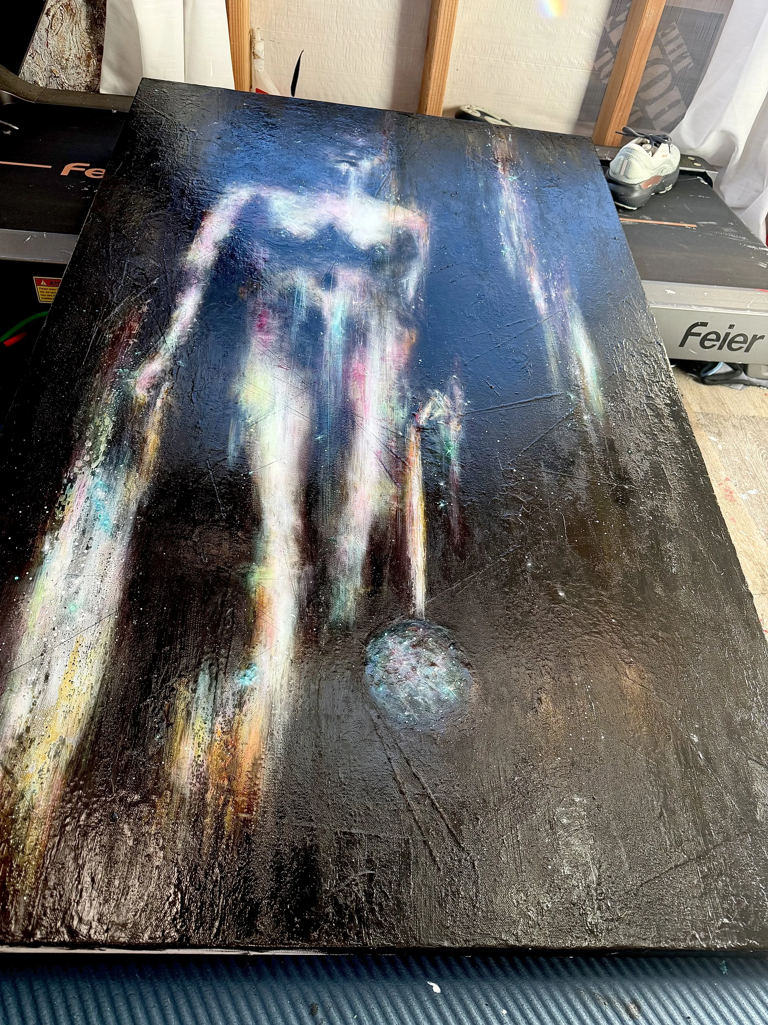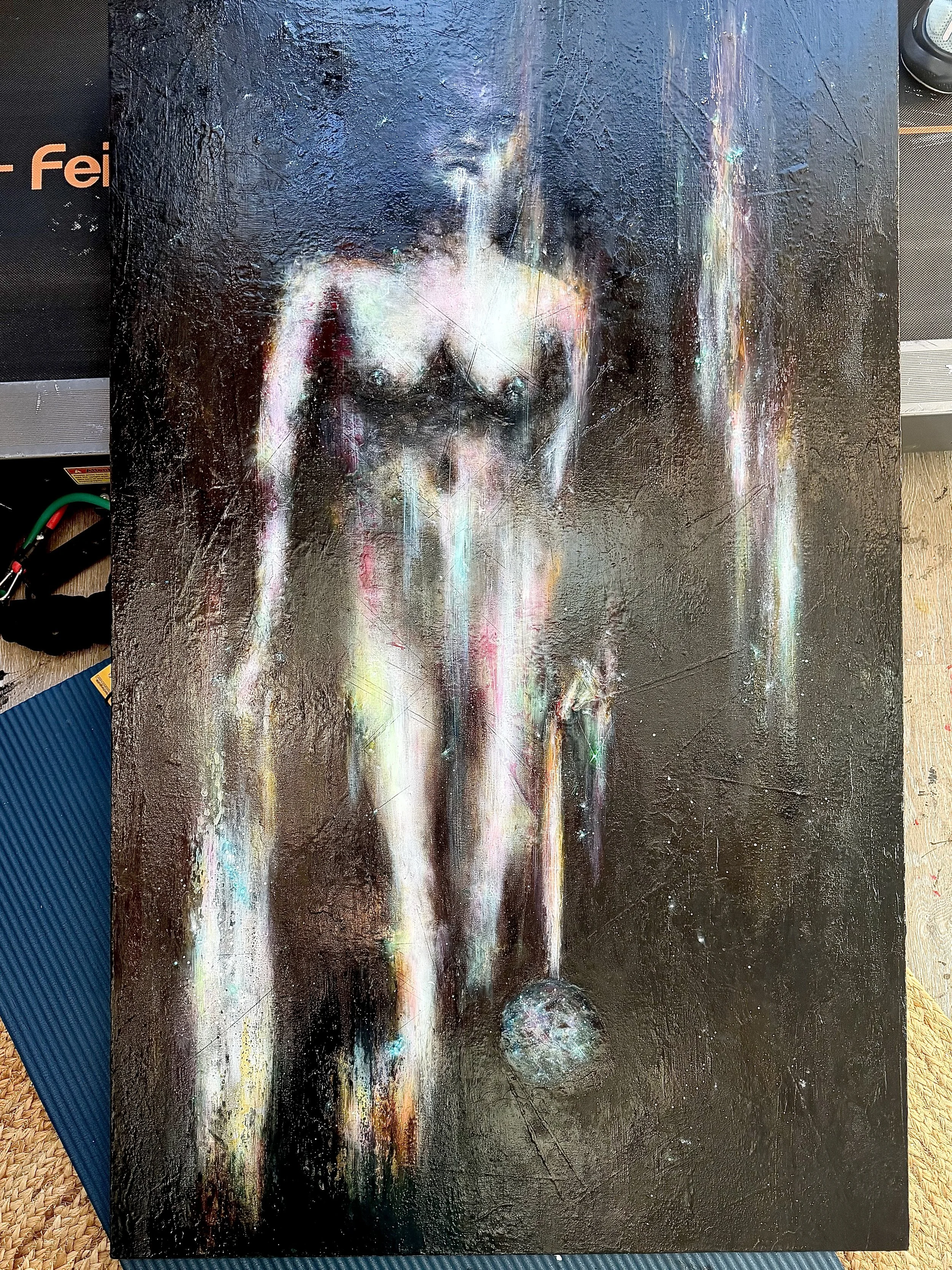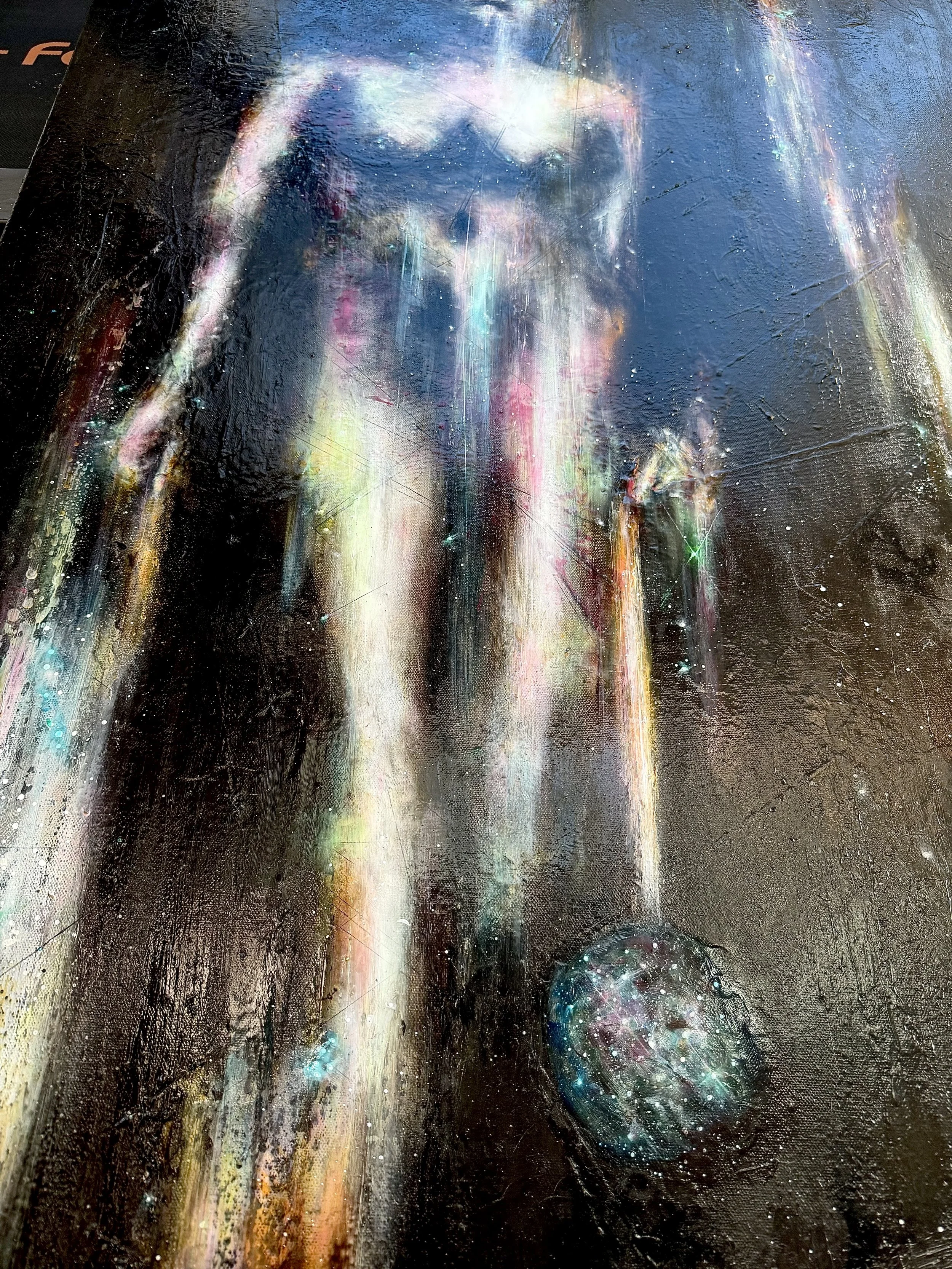 48x36 female/space detail work on stars, galaxies, nebulae. Reinforcement of the various shades of black, with gloss and matte. #art #painting #figurativeart #modernart #contemporarypainting #kelliethomaswalker #artist #artwork #artworks #artlife #artcollector #outerspace #space #astronomy #spaceartwork #writer #losangeles #longbeach #artgallery #artstudio #californiaart #largescaleart #interiorart #fineart