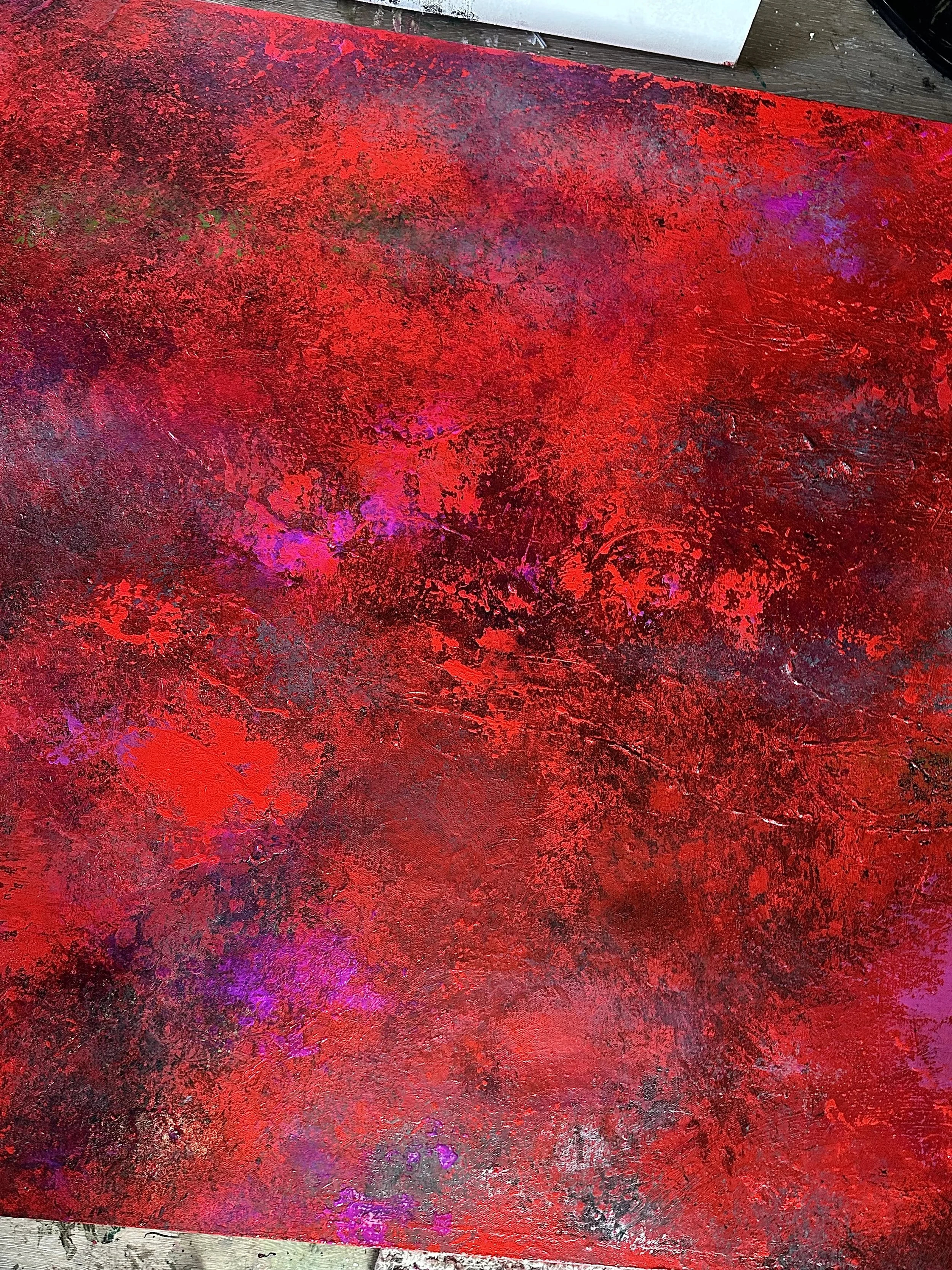 48x40 (maybe 48x36…lost my measuring tape) sexy-heated abstract. The two under paintings yield fantastic texture and depth. #abstractart #abstract #abstractpainting #redart #redpainting #kelliethomaswalker #statementart #painting #art #artwork #artist #writer #losangelesart #californiaart #longbeachart #largeart #interiors #artgallery #fabricoftime