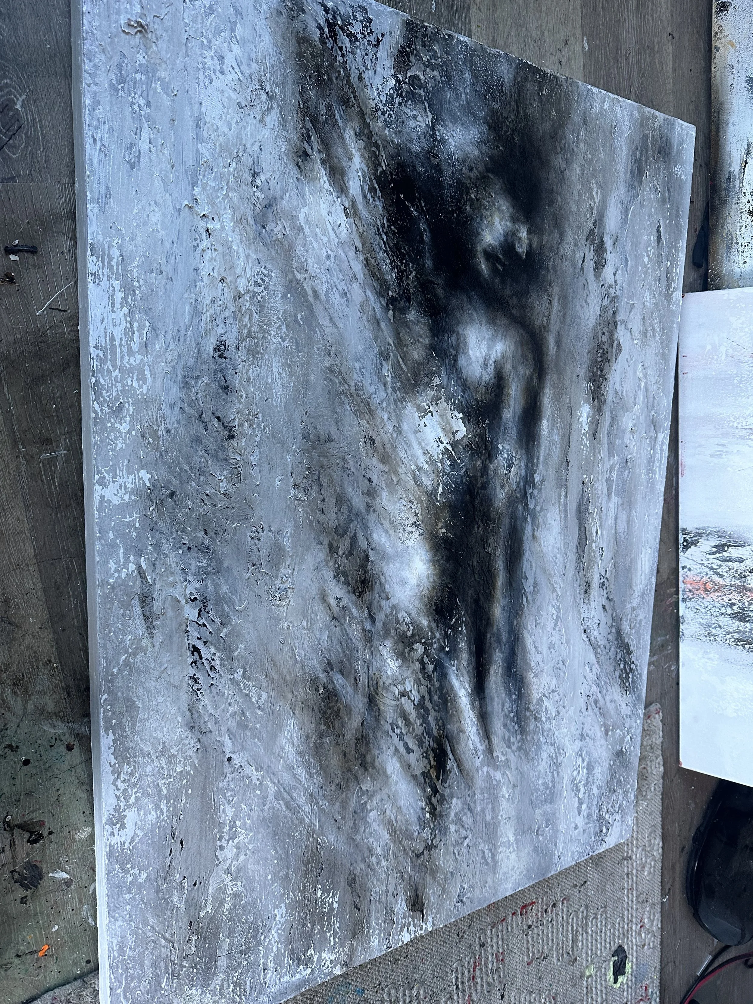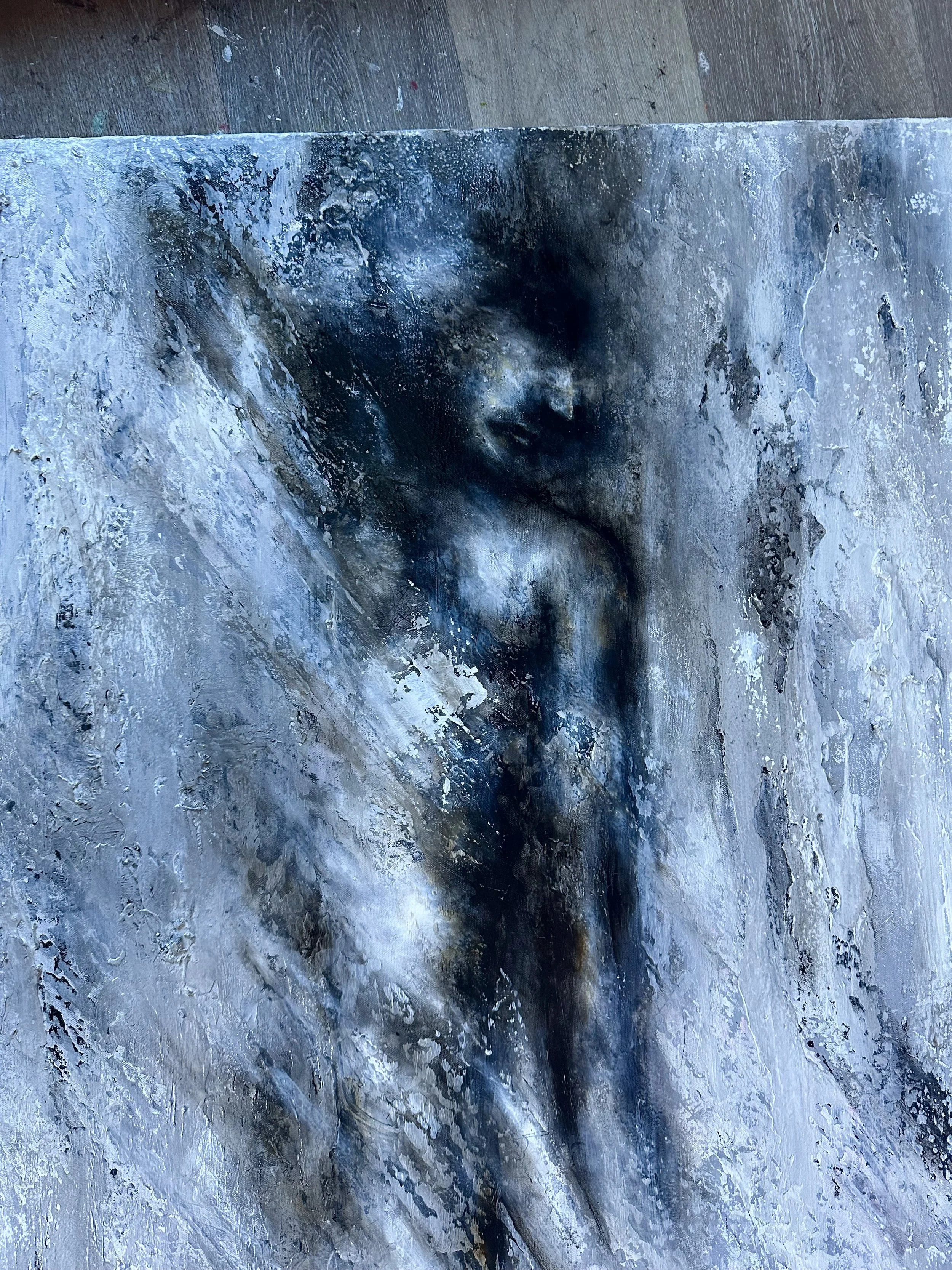 “The Edge Of The Next Level” 48x 36 female figurative abstraction, work in progress. #artist #abstractart #art #contemporaryart #kelliethomaswalker