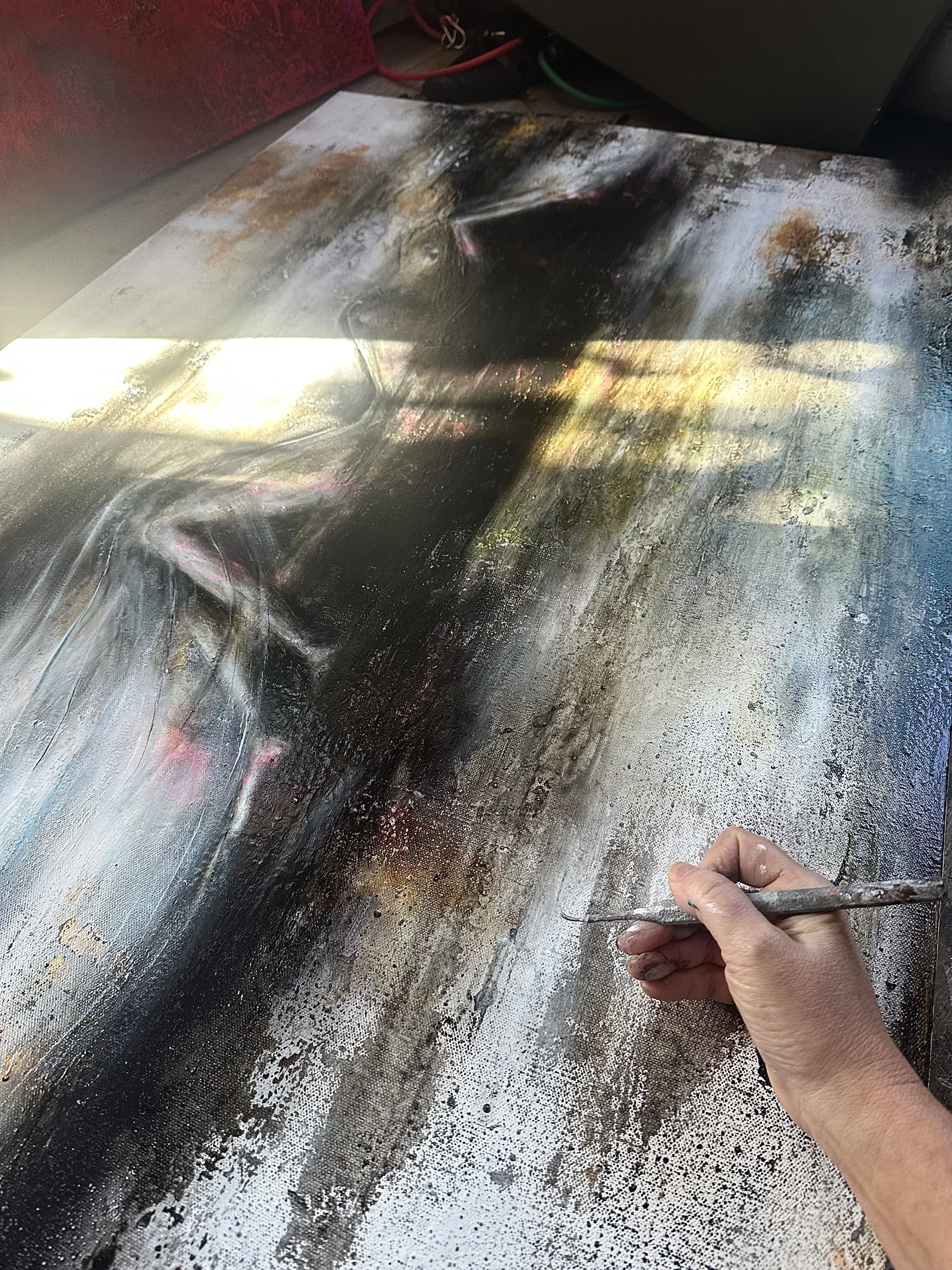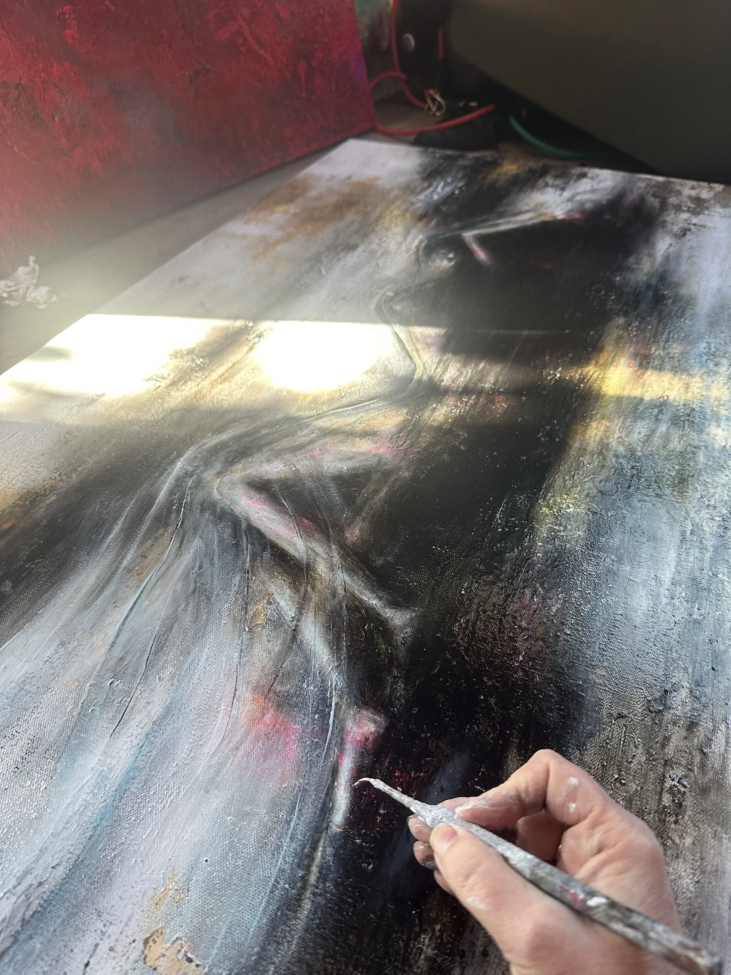 Detailing the shroud that covers her with a sheer white/Phalo blue combo. Just a hint of blue to pop next to the titanium white. #art #artist #artwork #artsy #arts #artdealer #artforthesoul #artistic #artoftheday #painting #painter #figurative #figurativepainting #female #kelliethomaswalker #gallery #artgallery #losangeles #longbeach #sandiego #writer #artstudio #fineart #origionalart #abstractart #abstractpainting