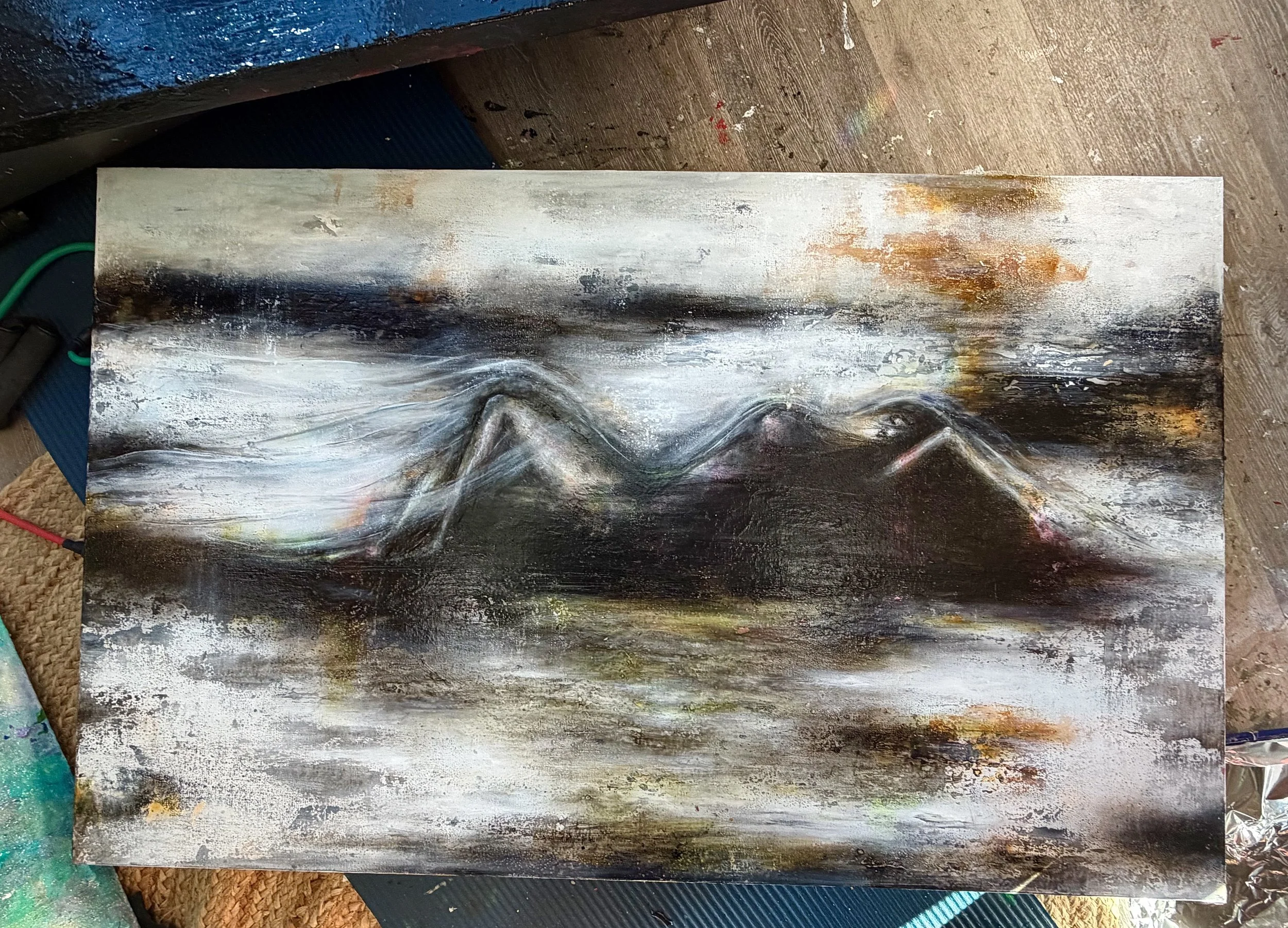 Detail work on female figurative abstraction “Wake Up”. I think it’s a 48x36, maybe smaller. #wakeup #art #paintings #finearts #artwork