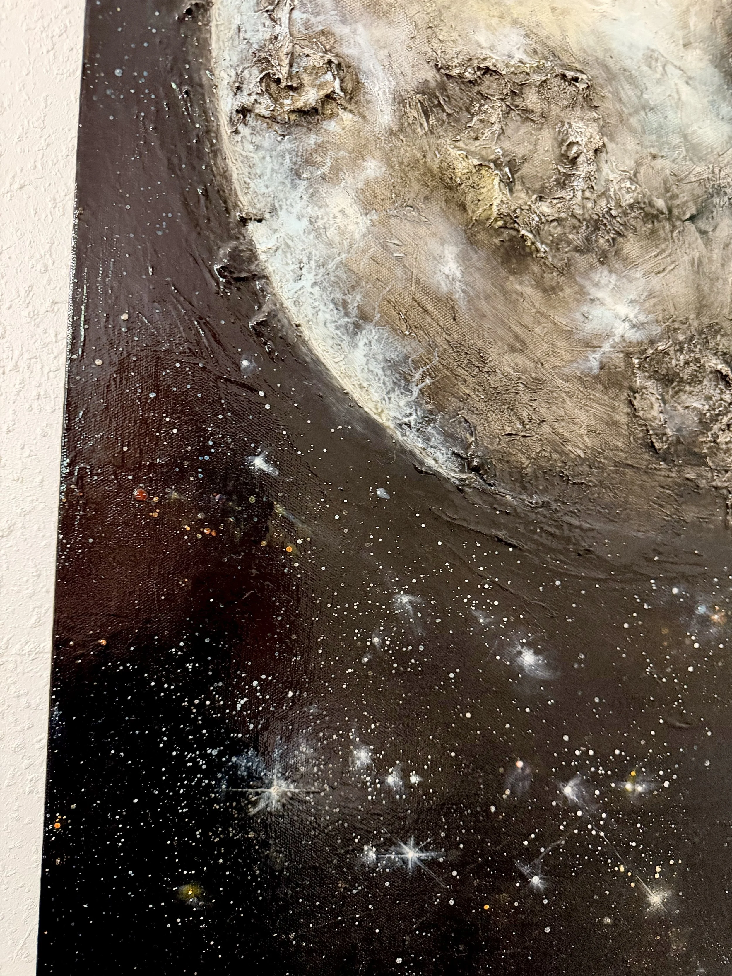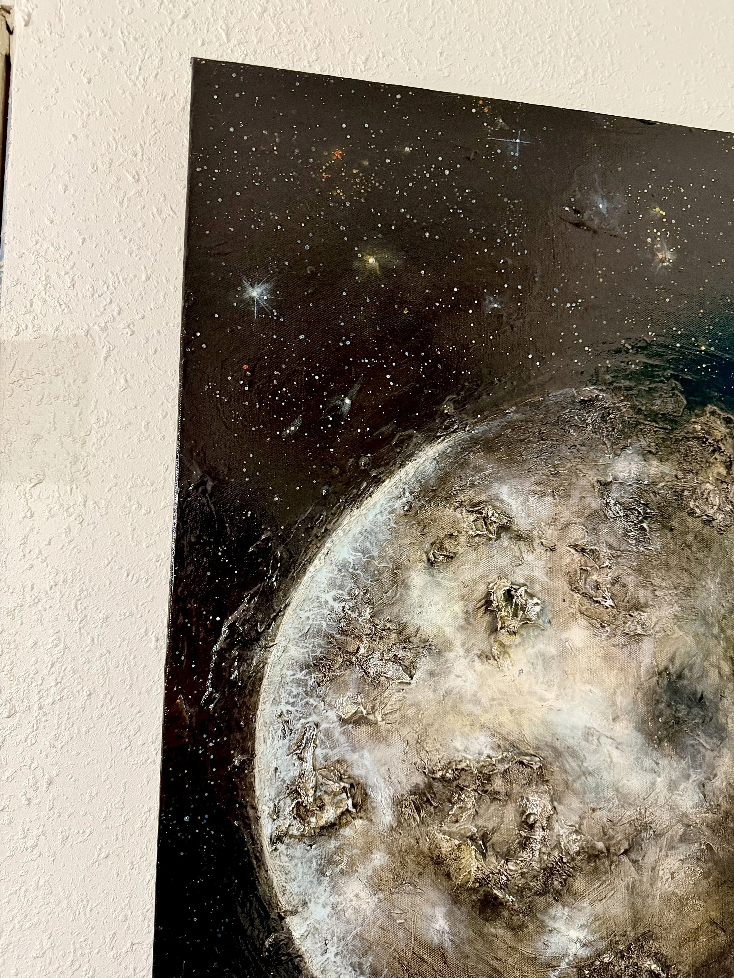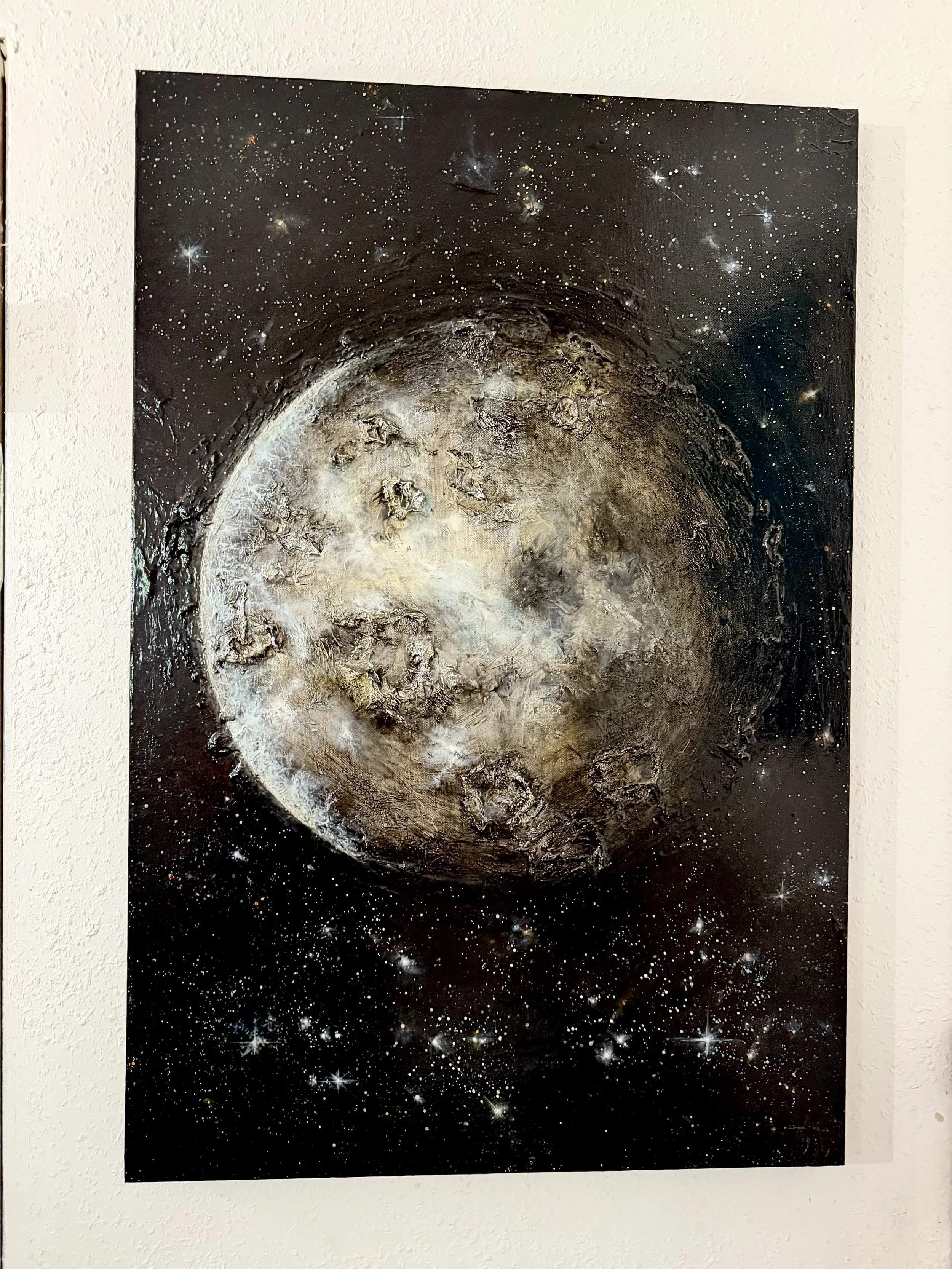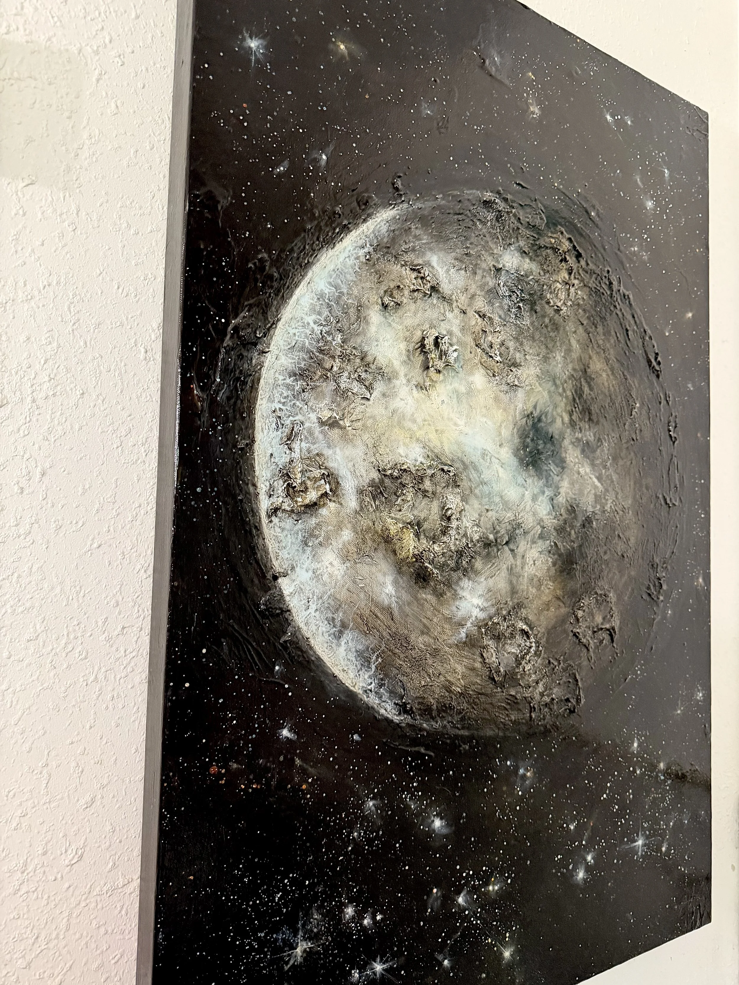 In honor of the Artemis 2 launch, I thought it would be appropriate to post my painting of our Moon. The four astronauts are now headed toward the moon for a flyby. I watched the launch at home, and the little kid in me was beyond thrilled. Good luck to the astronauts aboard the Orion capsule. 🌕 #moon #artemis #art #paintings #fineart