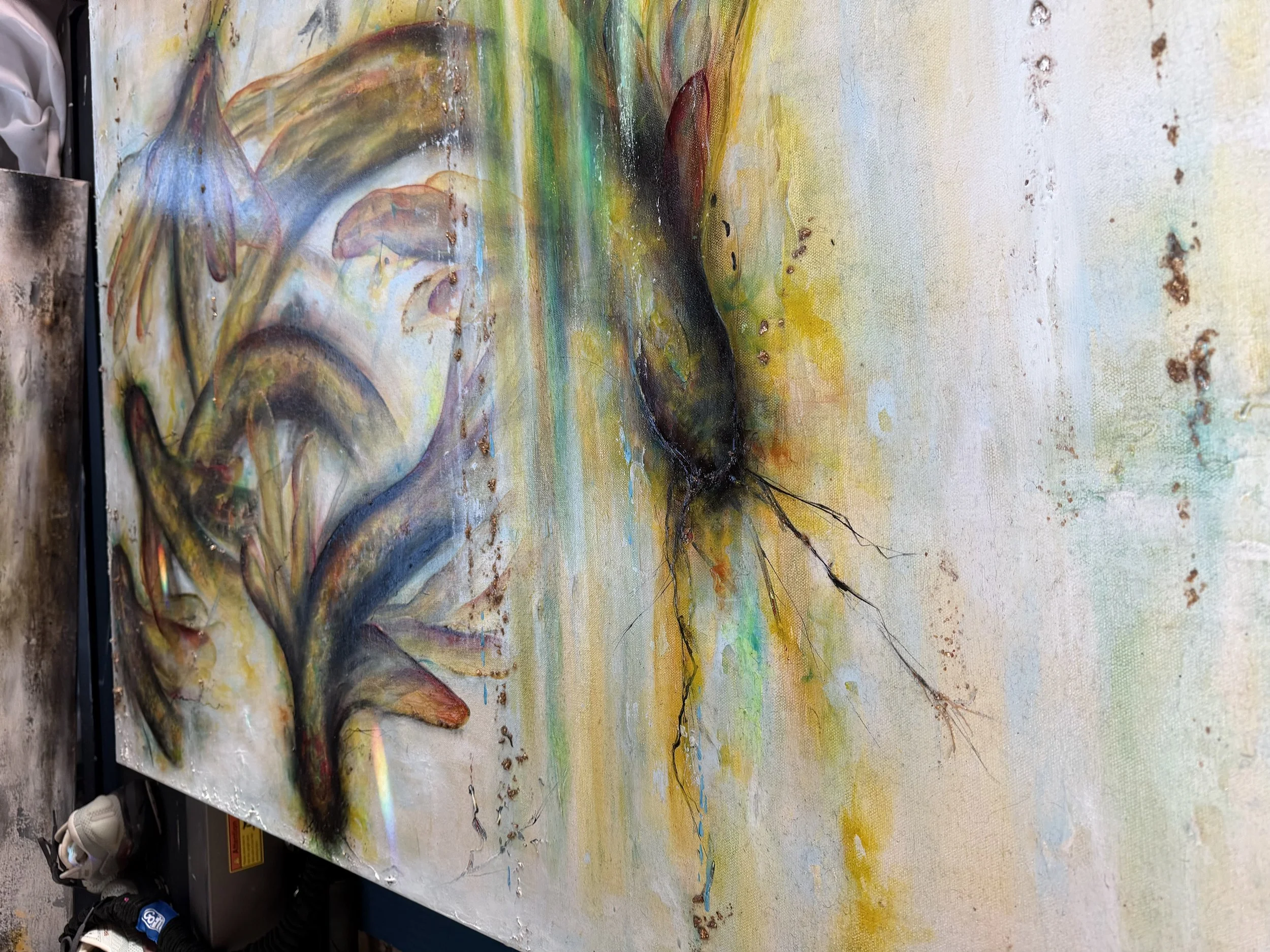 After our household being down sick for almost 3 weeks, I finally finished “Where She Once Was” 60x48. It, along with another 48x48 of mine, will be going in @sasseartmuseum st the end of the month thru the beginning of March. #art #painting #lilypond #floralart #modernart #kelliethomaswalker #artist #artwork #writer #asbtractart #largescaleart #origionalart #contemparyart #artgallery #sassemuseumofart #natureart #artcollector