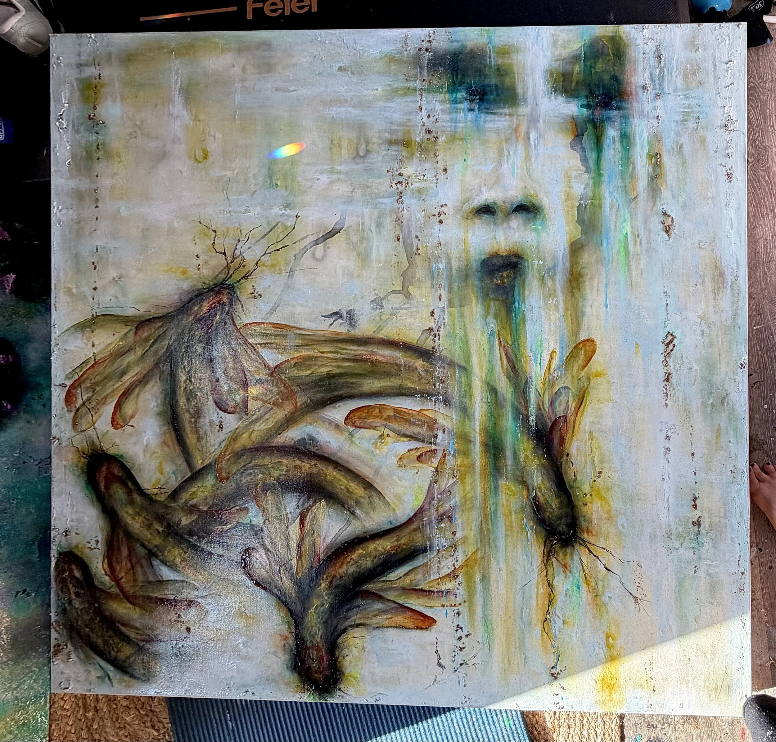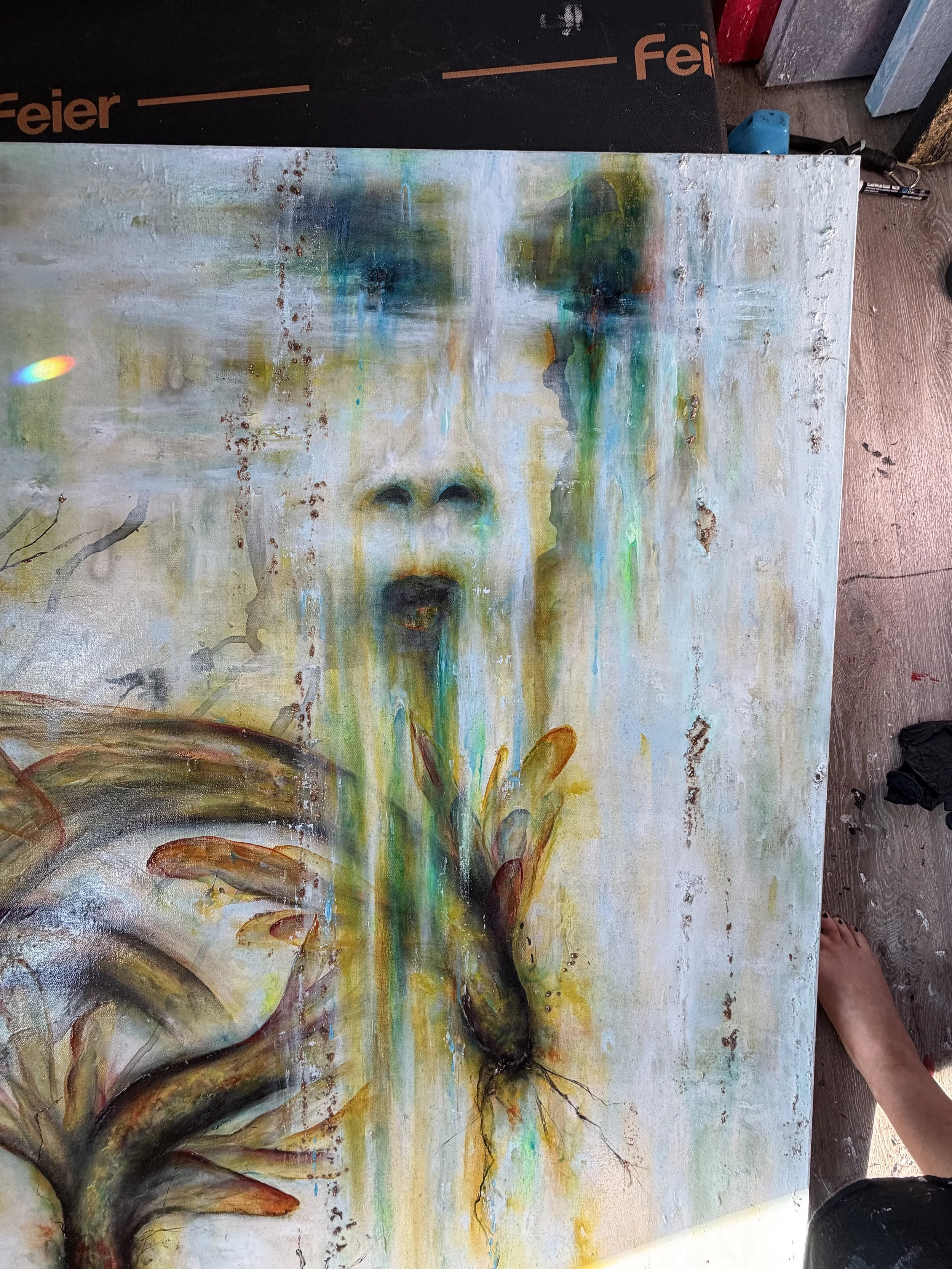 Detail work on female figurative abstraction “Wake Up”. I think it’s a 48x36, maybe smaller. #wakeup #art #paintings #finearts #artwork
